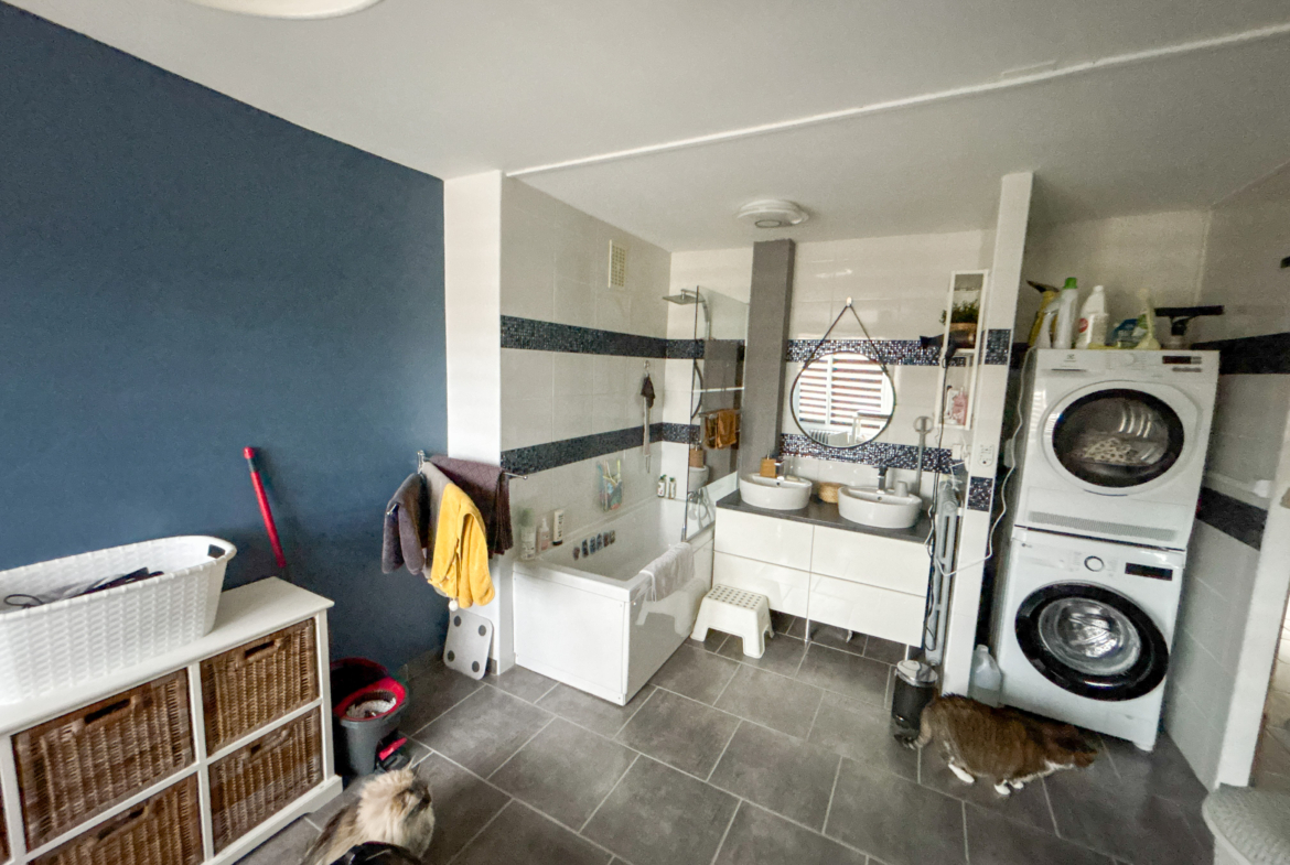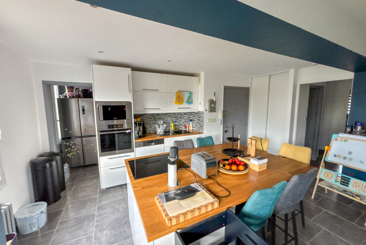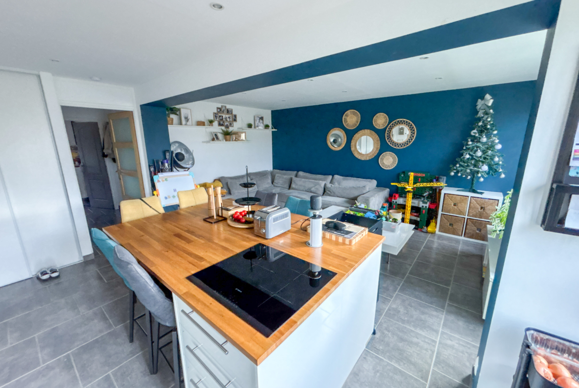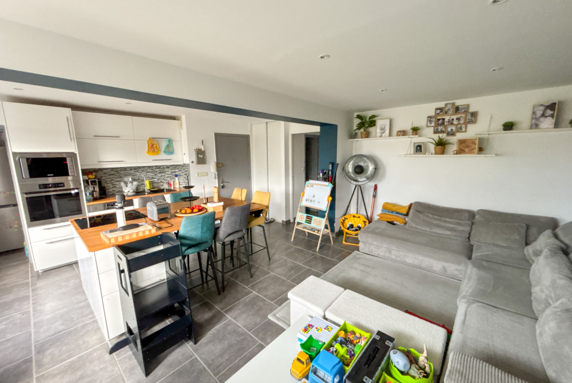 Beau séjour lumineux avec une cuisine ouverte, grande salle de bain avec dressing.