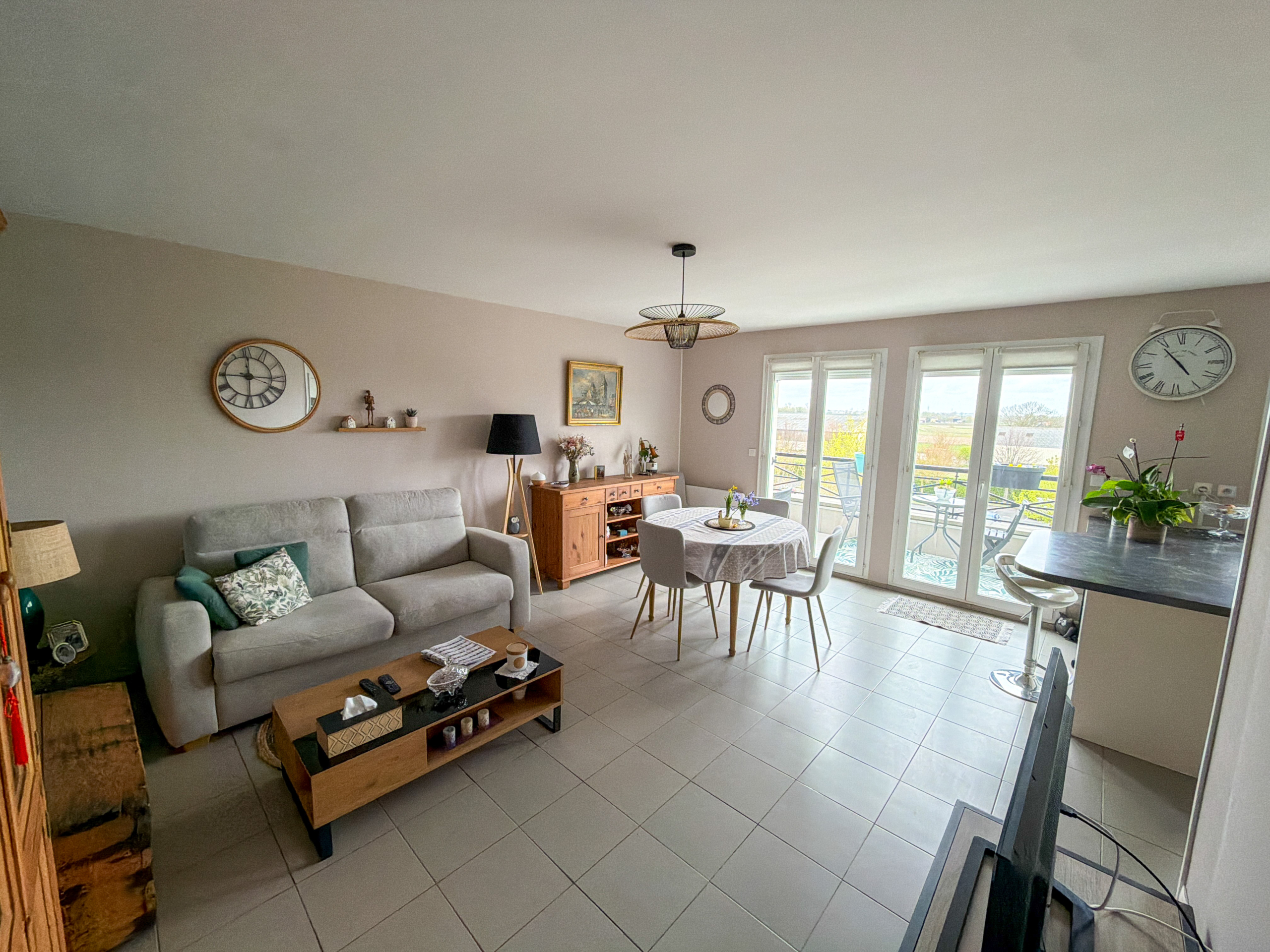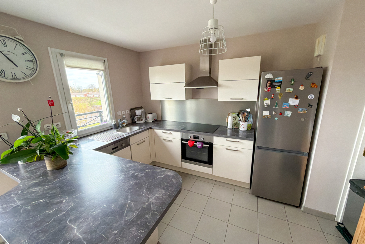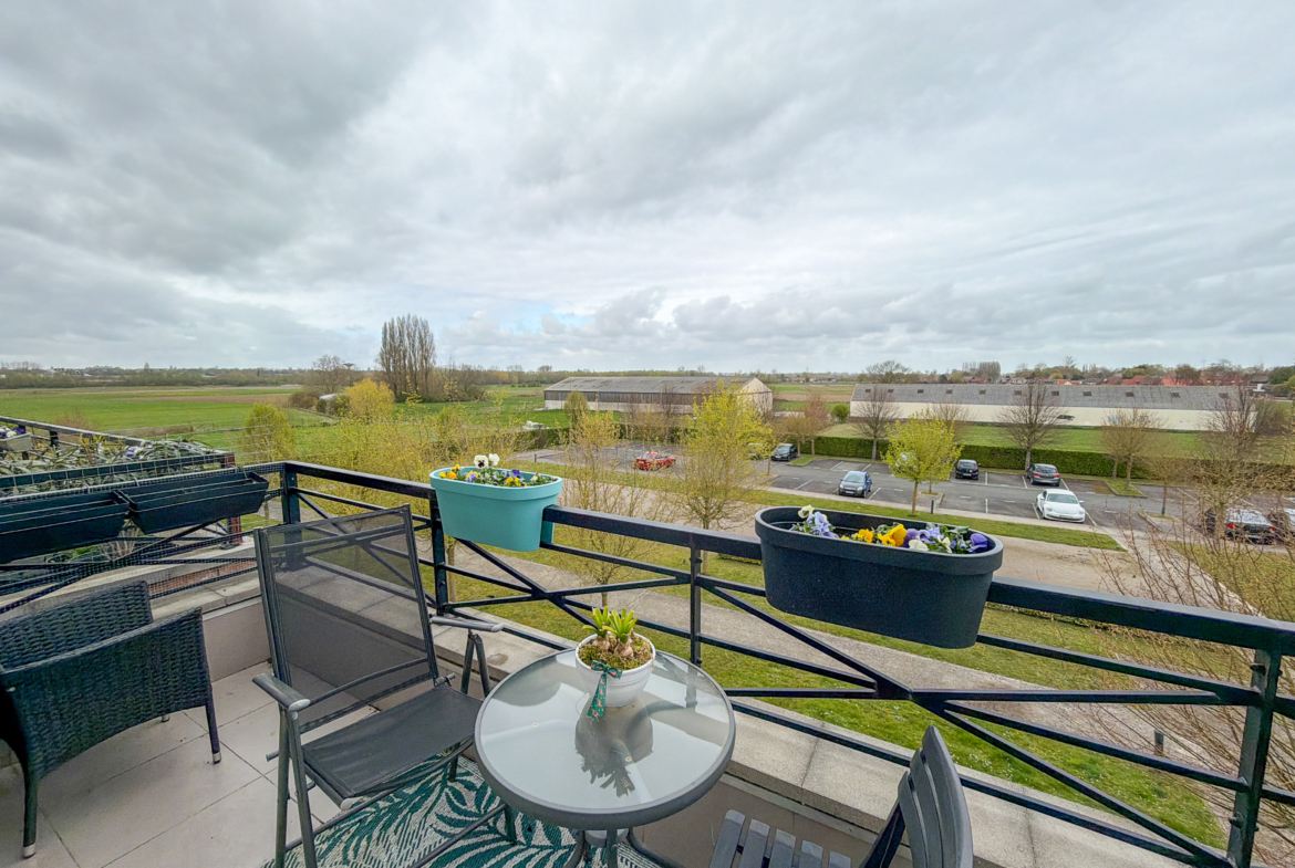 Niché au deuxième et dernier étage avec ascenseur, il se compose d’une entrée ouvrant sur une pièce de vie lumineuse. Vous profiterez d’une cuisine équipée ouverte sur un salon/séjour, le tout donnant sur un balcon avec une belle vue sur les champs.