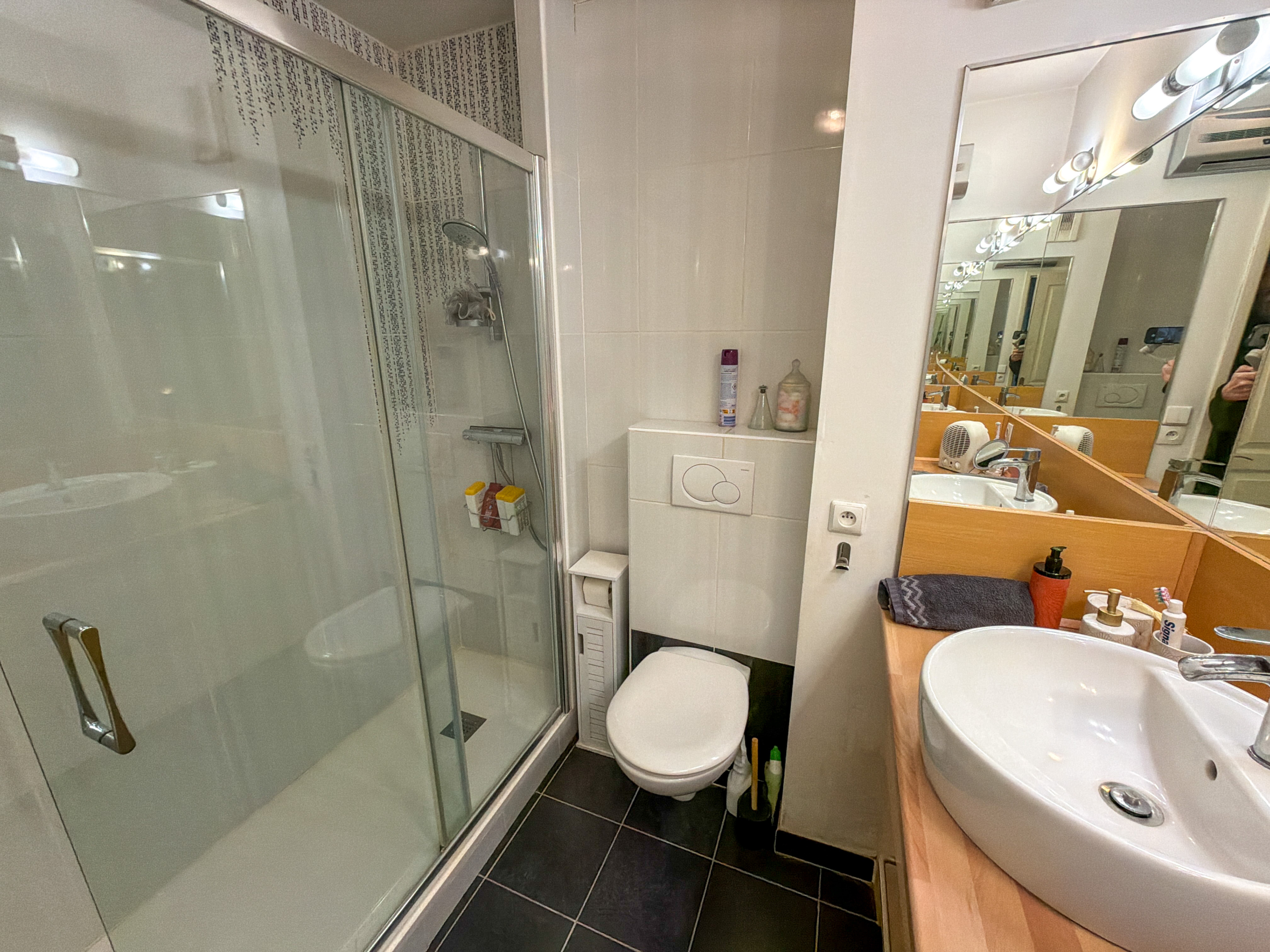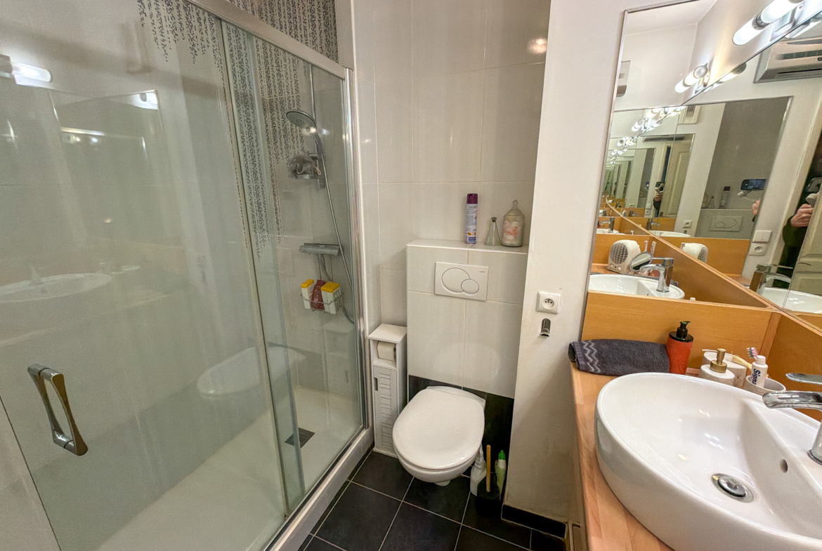 L’espace nuit dispose d’une belle chambre confortable, accompagnée d’une salle de bain avec douche et d’un WC. Pour votre confort au quotidien, ce bien bénéficie également de trois places de parking privatives.