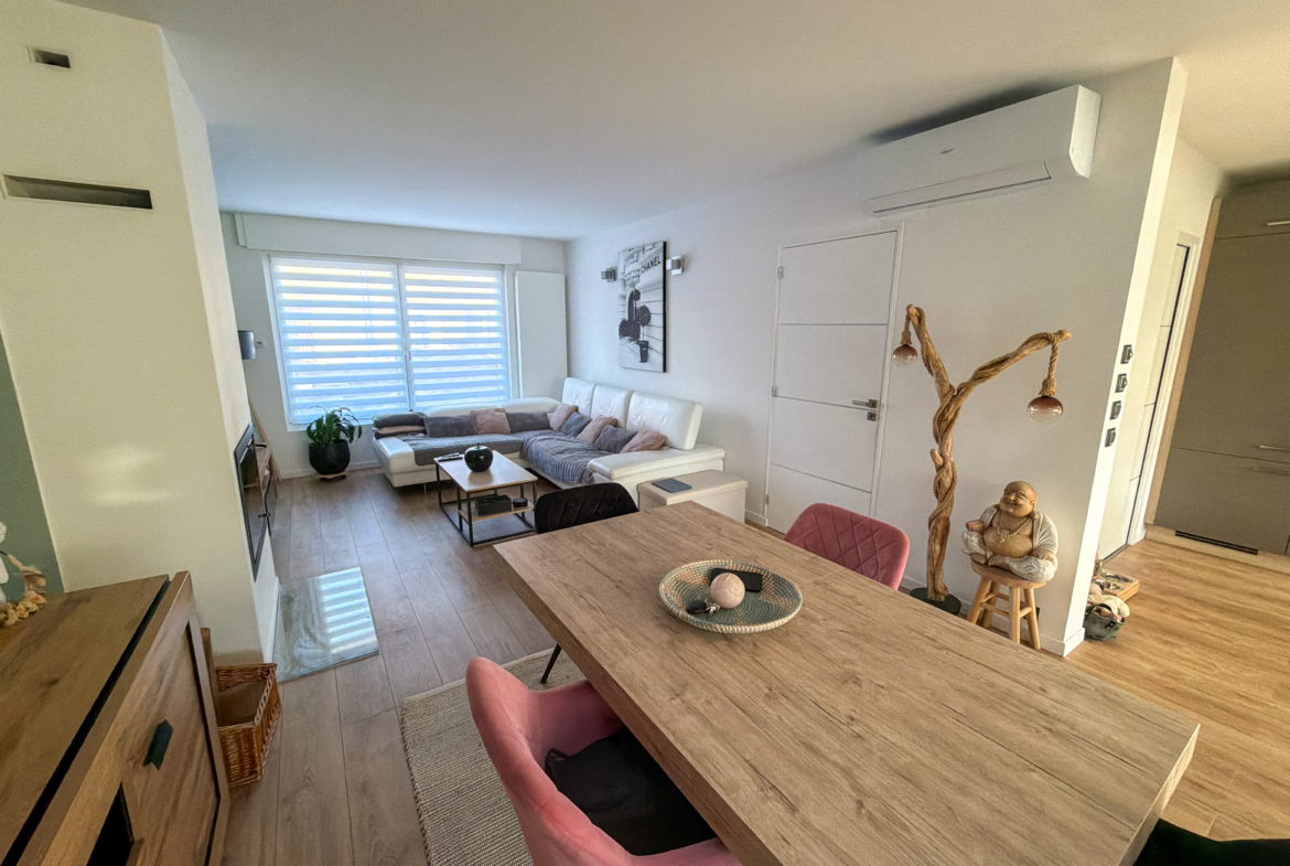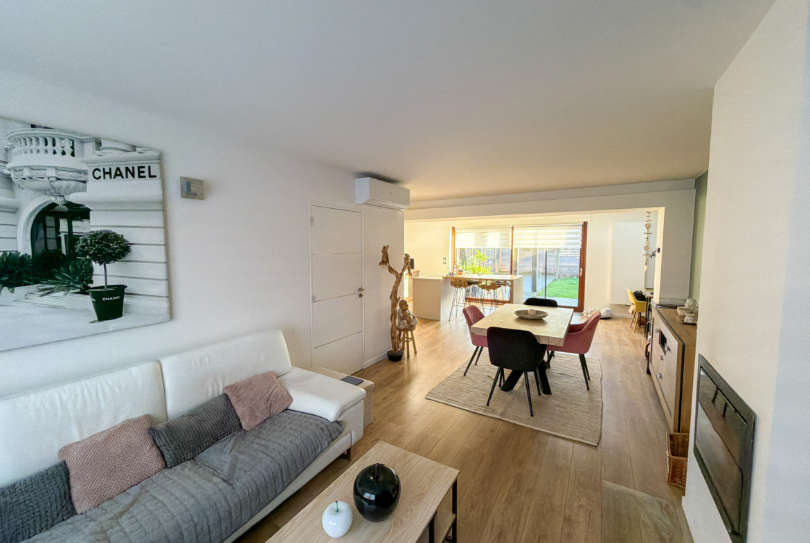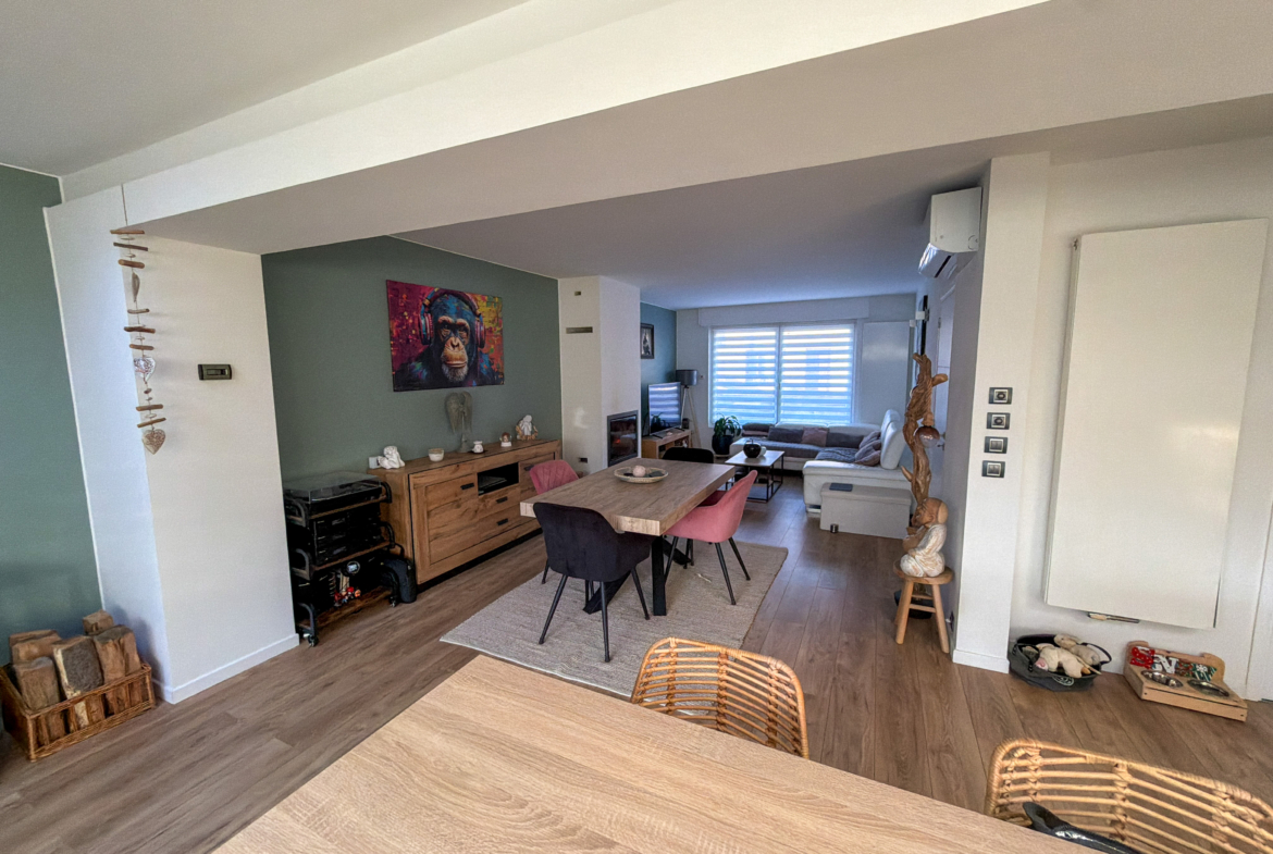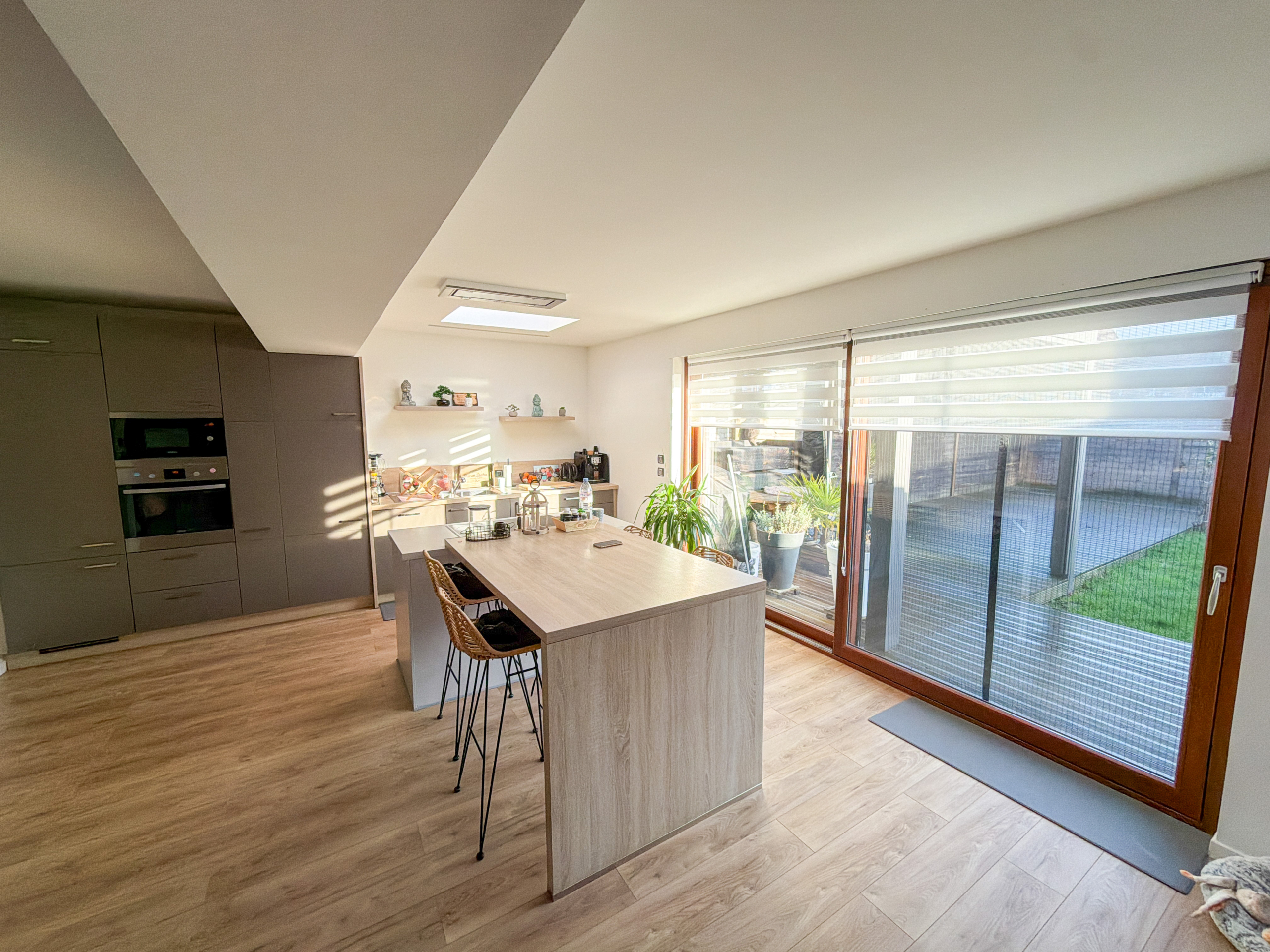 Un grand séjour lumineux ouvert sur une magnifique cuisine équipée, moderne et fonctionnelle
