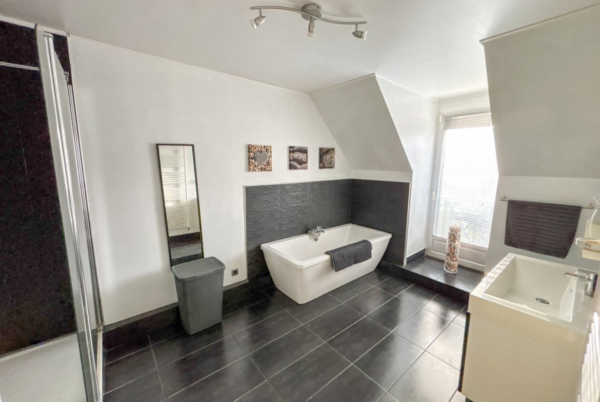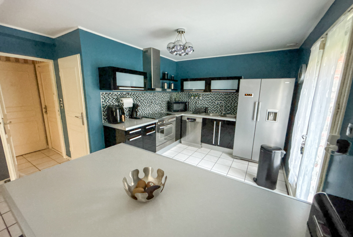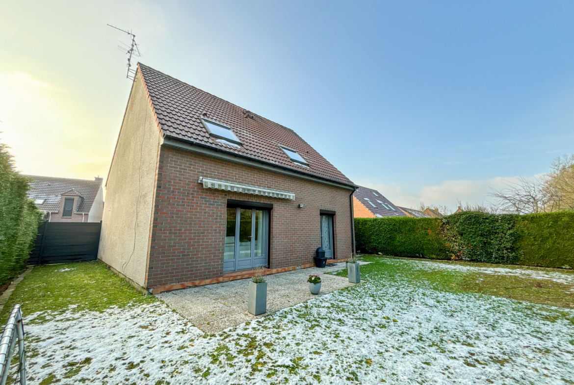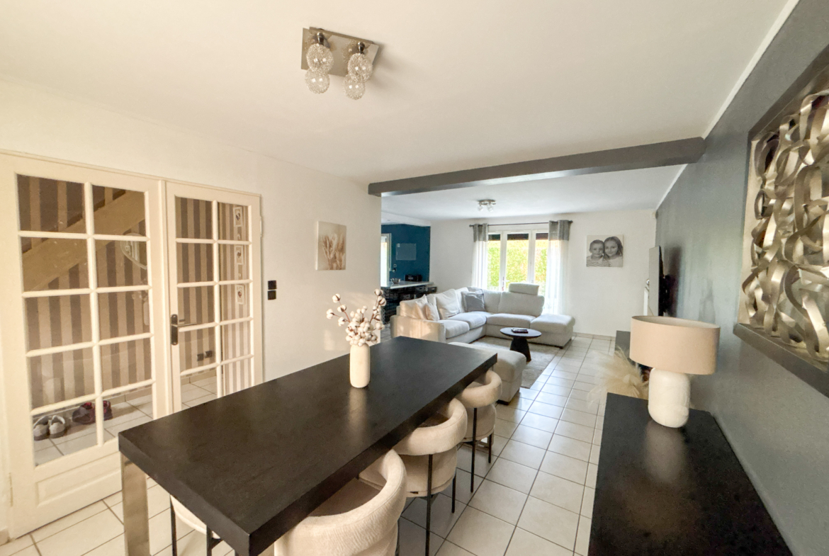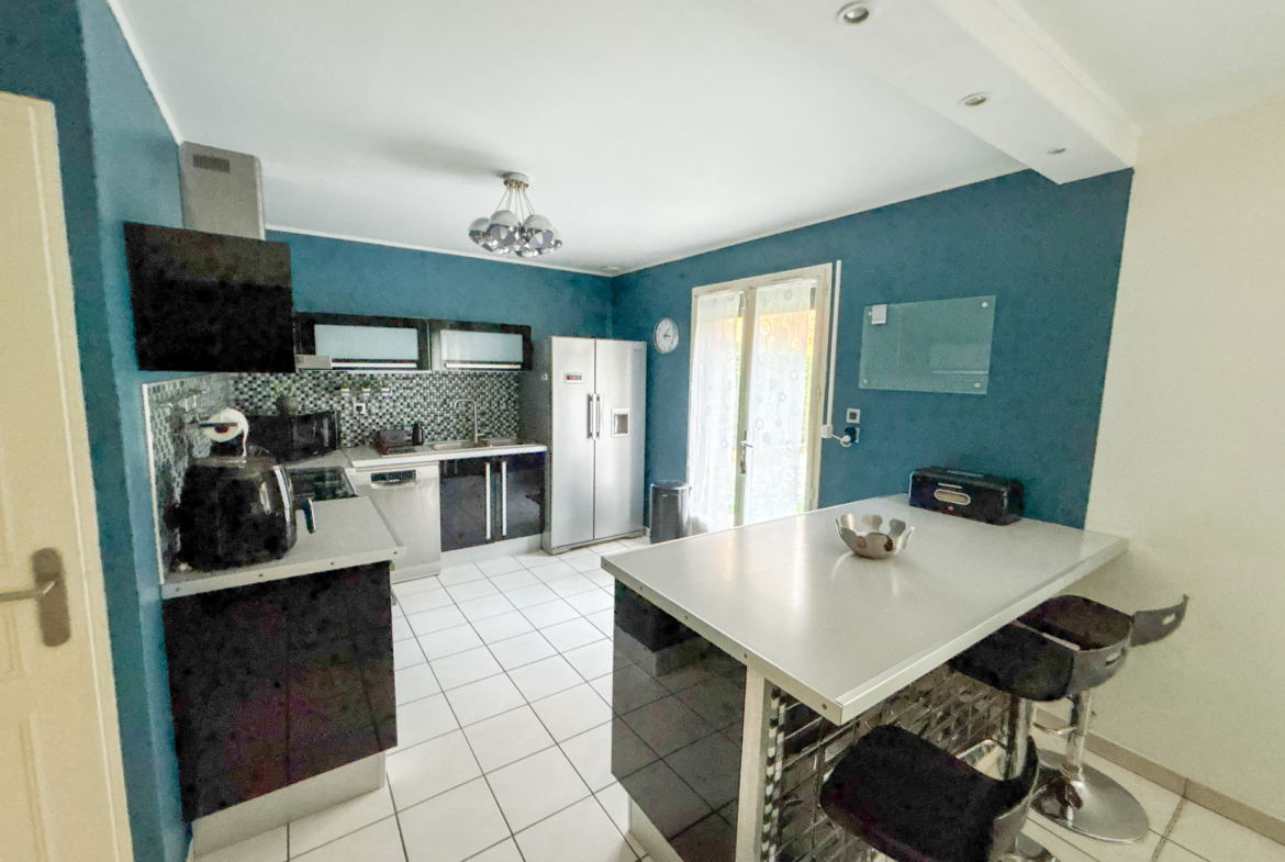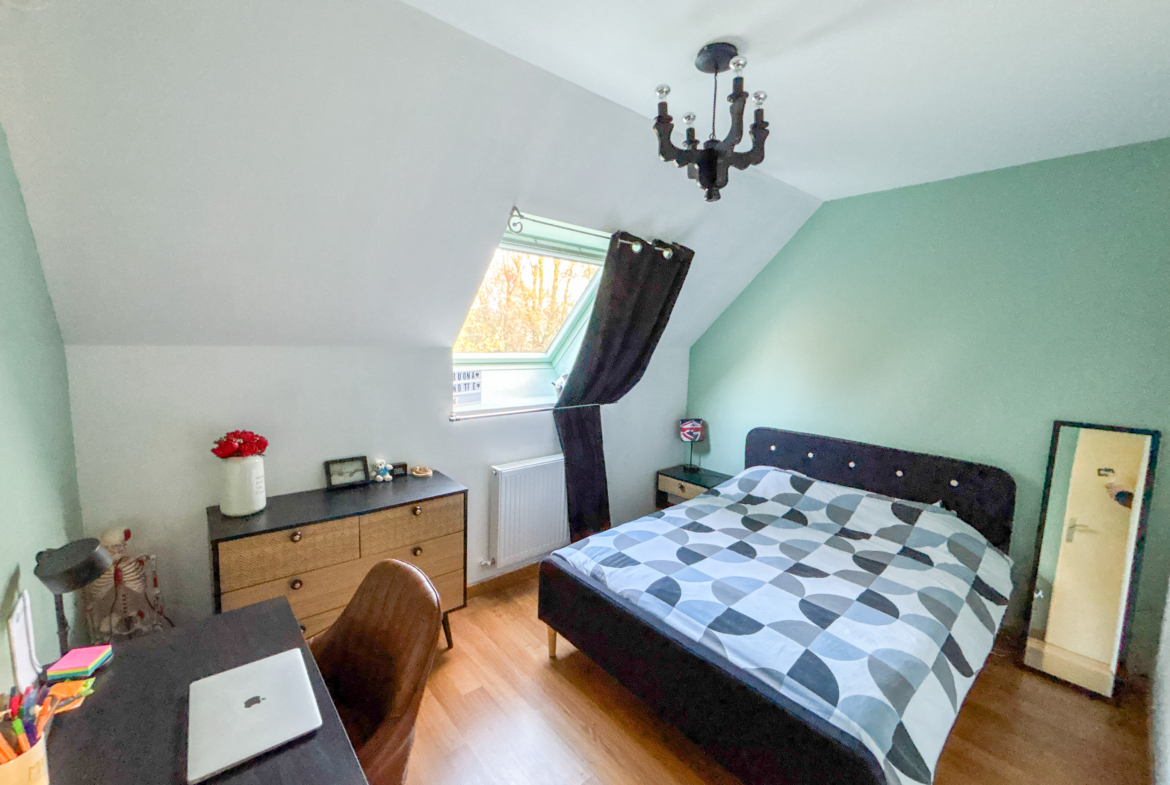 Cette maison vous propose un vaste séjour très lumineux, une grande cuisine équipée, et à l’étage, 3 chambres, un dressing/bureau, et une grande salle de bain.