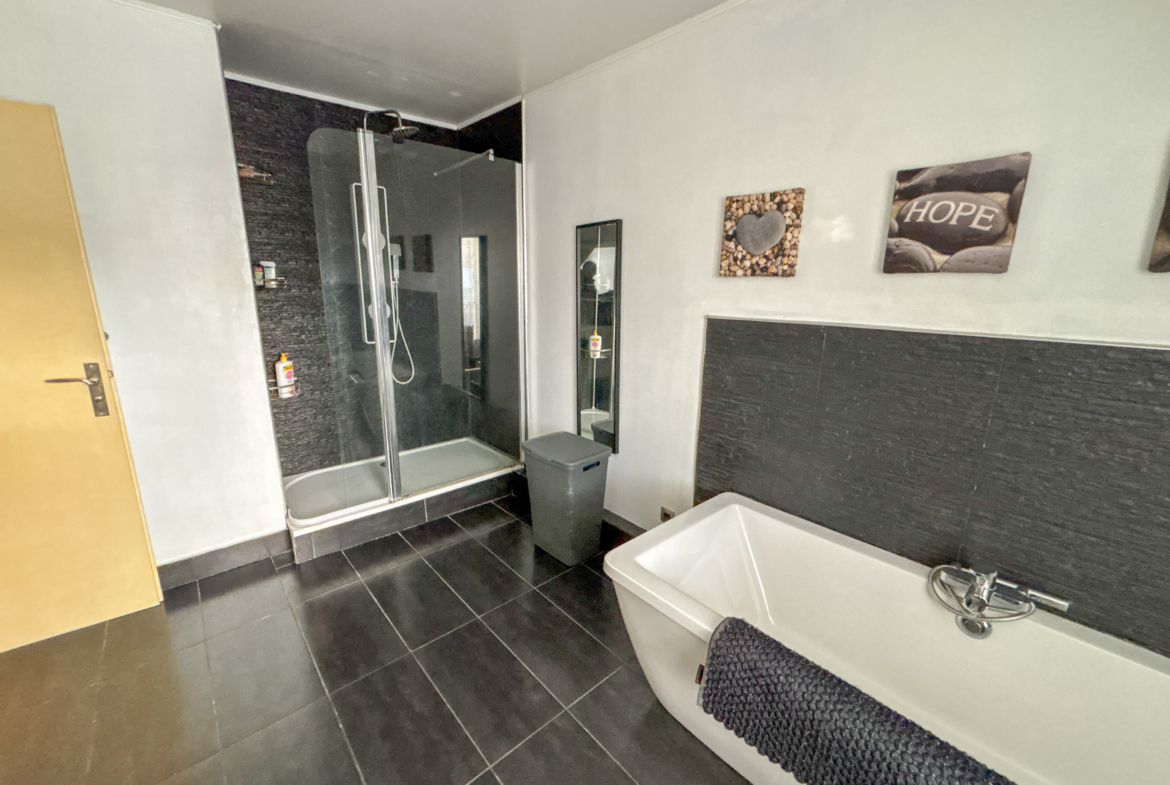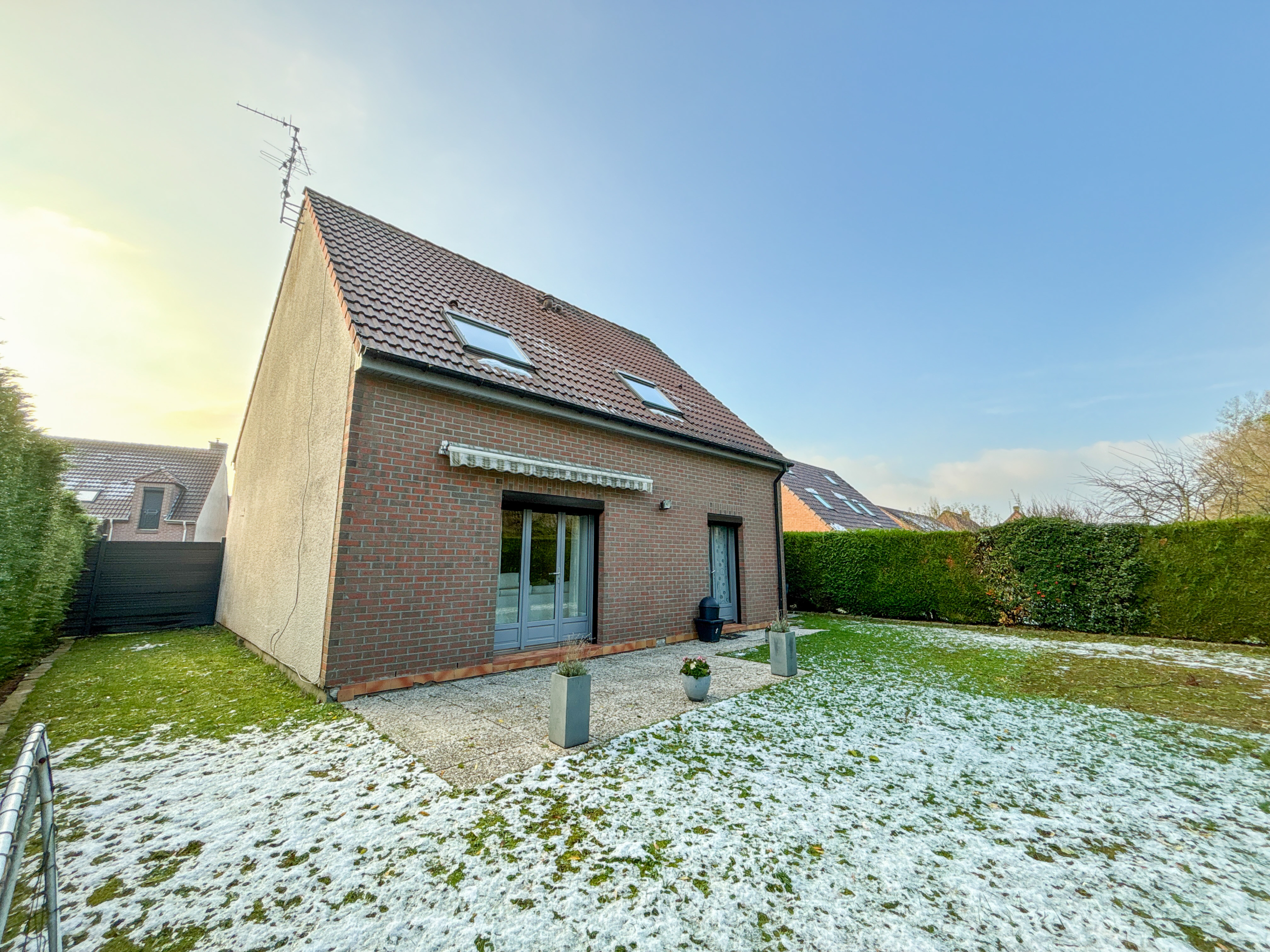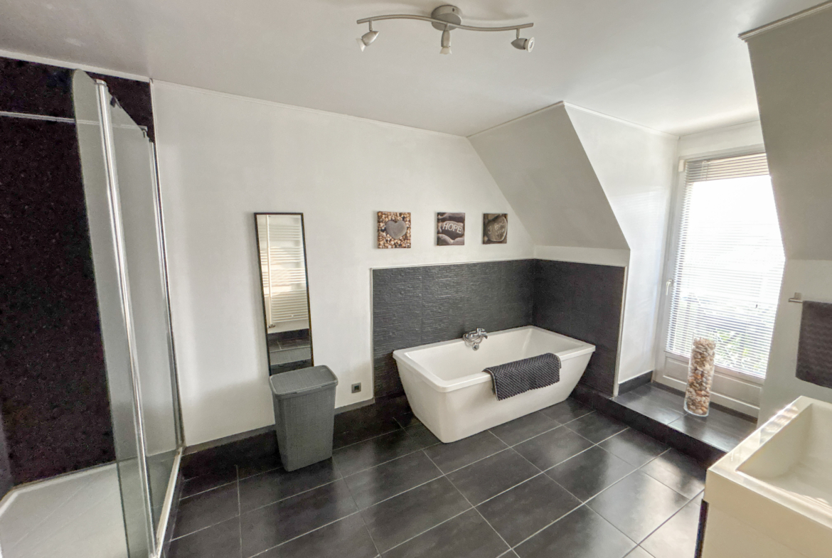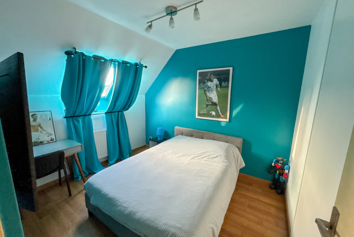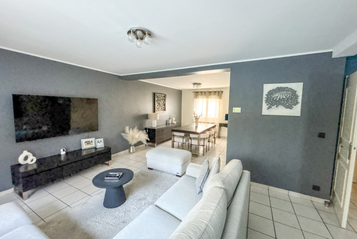 Cette maison vous propose un vaste séjour très lumineux, une grande cuisine équipée, et à l’étage, 3 chambres, un dressing/bureau, et une grande salle de bain.